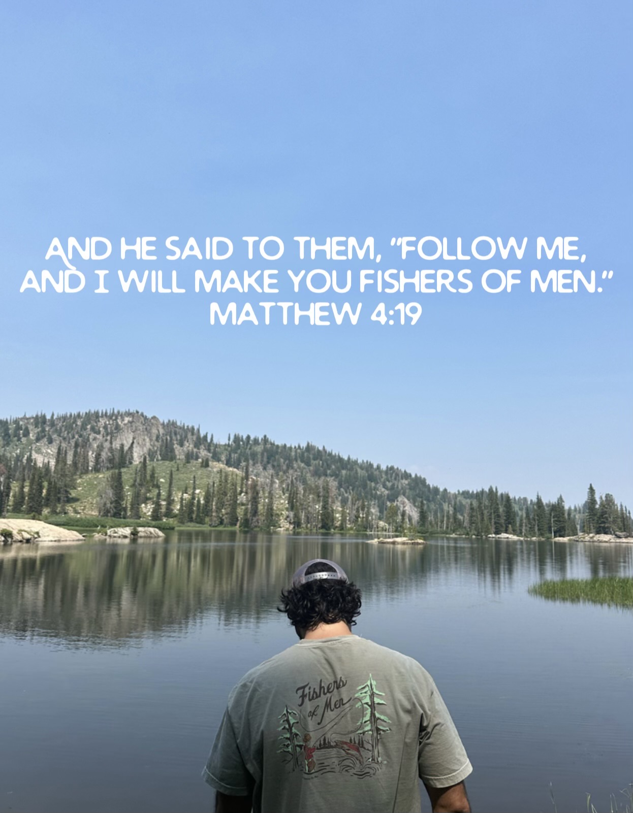 -Classic Western fishing scene with Matthew 4:19
